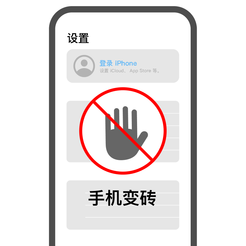 注意:请勿在手机设置的 Apple 账户中登陆公开账号!否则可能导致数据被抹除。